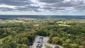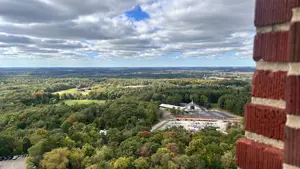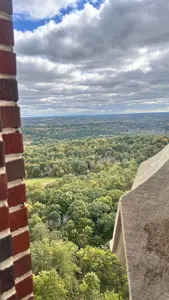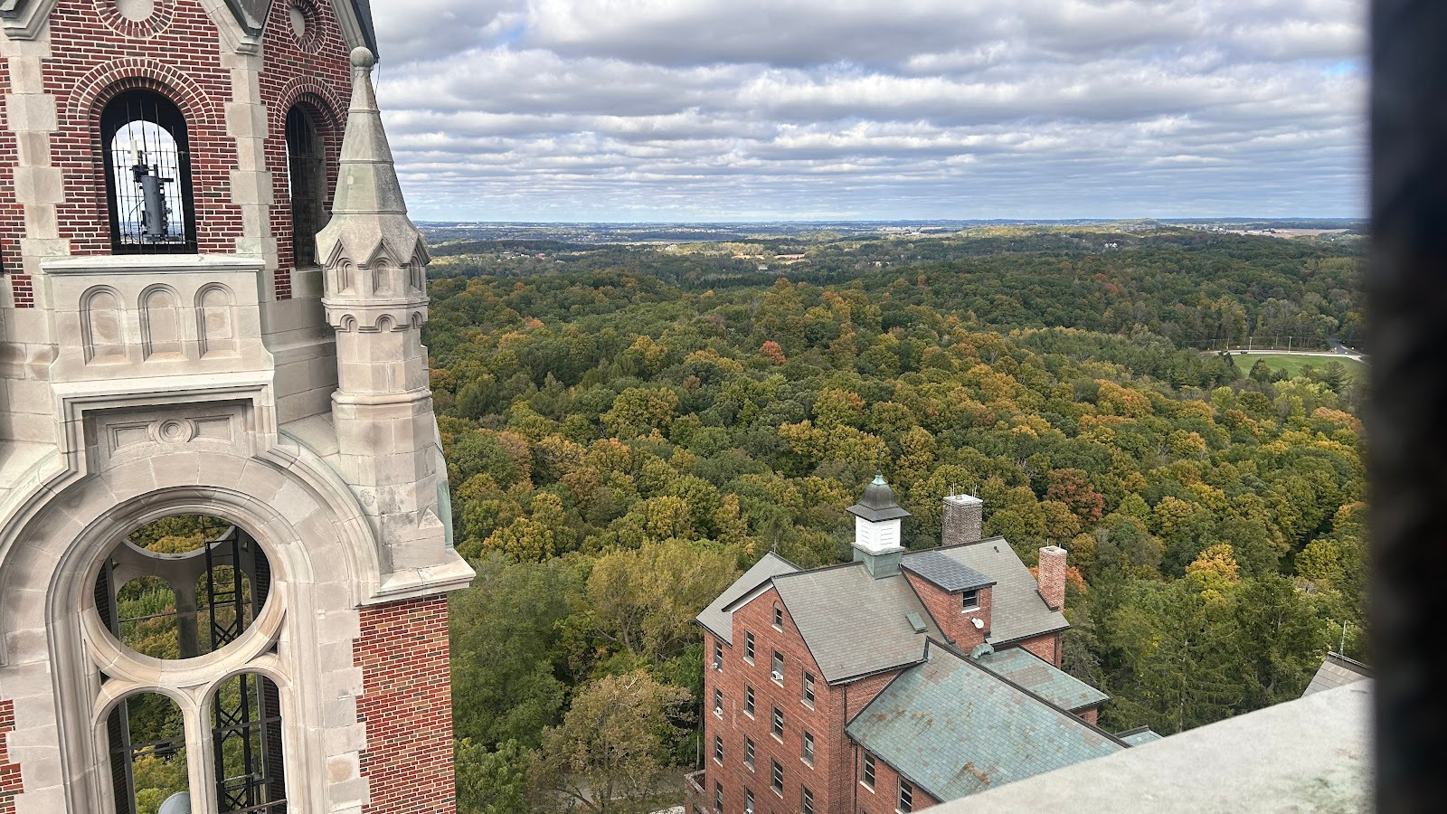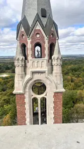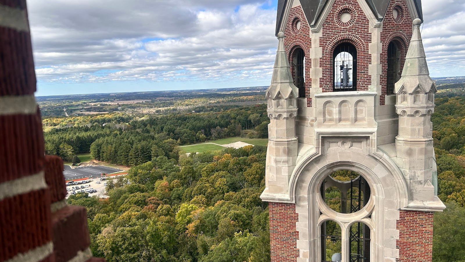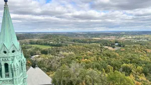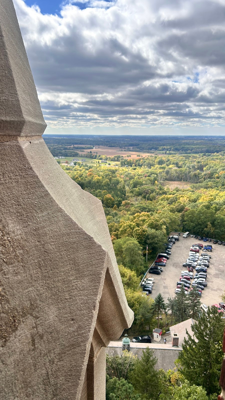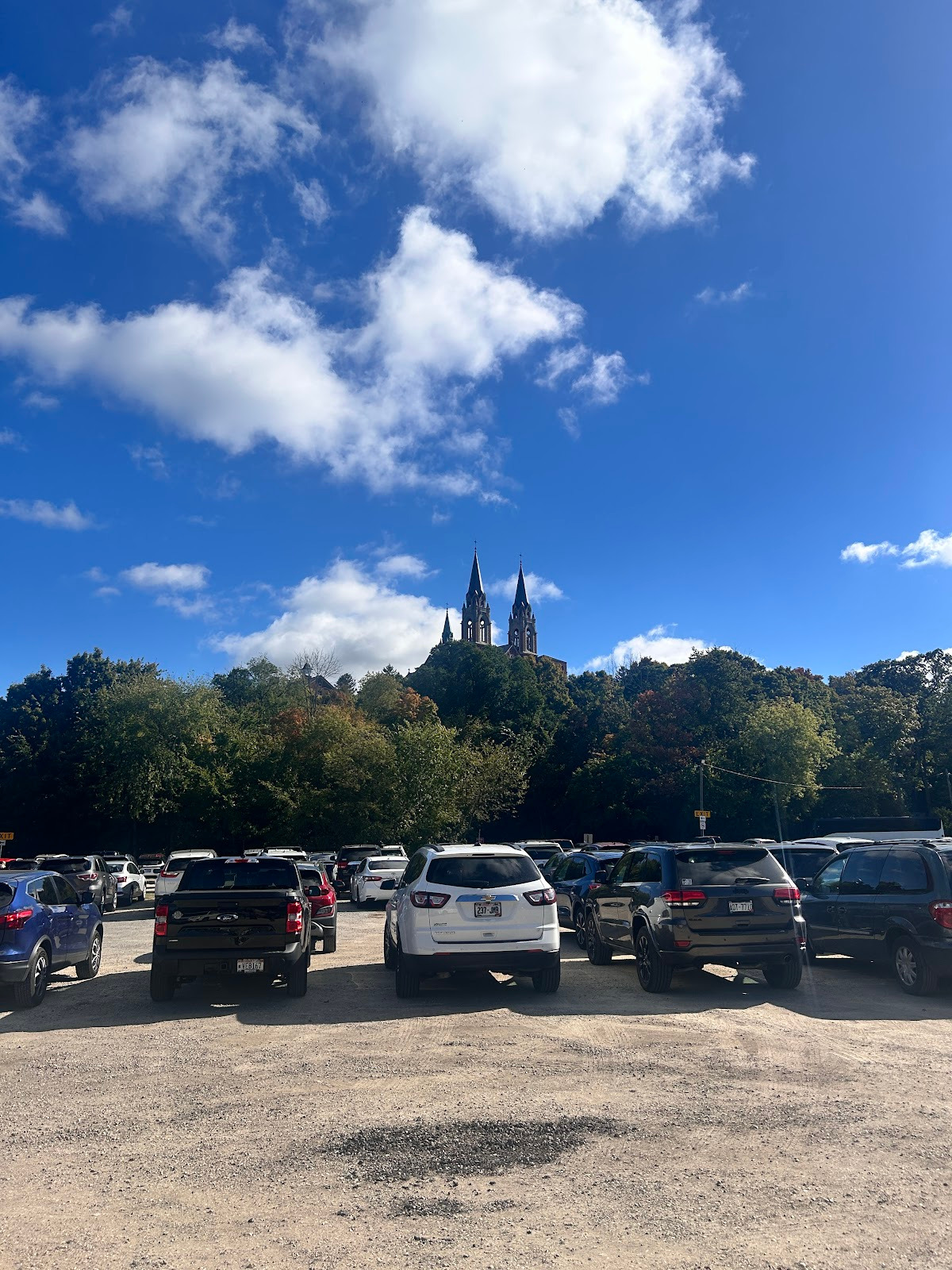 October 11th, 2025: Today’s the day of our hike, I woke up at 8:00am to have breakfast and cereal. I brewed myself some coffee before getting dressed in scouting gear and packing my lunch to head over to the Catholic center. I got there at 9:35pm just as they were ending mass, Cliffe came out with his parents and I talked to them and met them. Cliffe invited me to go feed the homeless but I told him I’m already going on a hike. I went in and this guy was serving fancy coffee, Kristine and Gabriella got some while I ordered a latte with 2 shots of white chocolate flavoring. I drank it and then this Black single mother came with her 2 year old son. I ended up in Father Aquinas’ car. There were 6 other people there including the priest. We got into the car at 10:30am, the priest made me sit in the front because I was the tallest. He started playing a podcast by Father Tim Dexter. One of the people in the car was this guy who I would be calling Nash and his friend who was drawing. We had to stop for a seatbelt issue but that got fixed. On the podcast, they mentioned a bunch of things, Pier Giorgio Frassati was born in 1901 with an atheist dad and a lukewarm, he was rich and helped the poor but opposed Benito Mussolini. He died on July 24th, 1925 after contracting polio from a poor person he was helping, thousands attended his funeral. Mussolini interfered in the canonization process of Frassati, pressuring the clergy, bishops, and even cardinals to accept lies about him being an adulterer. There are a lot of photos of Frassati including of him dying, and there was his visitation of the sick on Friday as an extra penance. Nash’s friend was doing the 5 minute draw challenge. Then Father Timothy Dexter on the podcast talked about his seminary buddy Brian Welch, who went from being a party animal in seminary but then changed. He was in Cambodia when they announced the retreat but kept going to church until Communists found out his route to church and executed him then. We passed by Singh gas at 10:39am, a yard sale of USA flag merchandise celebrating the 250 years of the United States in 2026 at 11:11am, and arrived at 11:15am. We were the only car ride to complete it. I got off and we waited for the others while I took this picture of the Basilica: