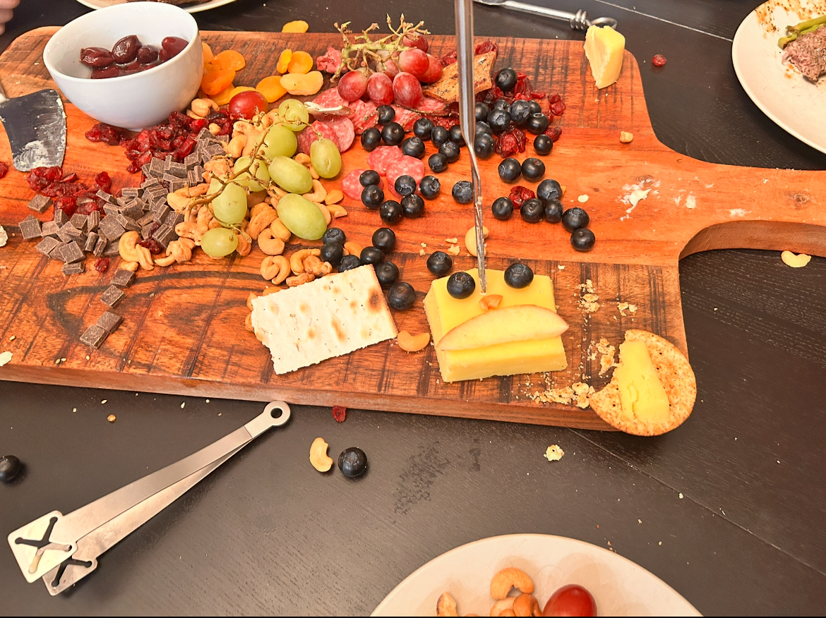 I watched the kid play chess against Mercurius. He had a good understanding of the rules, pointing out a time when Mercurius accidentally didn't declare a check. Next up was the steaks, Reuben and I ended up cutting ours in half while the other guy taught us how to make a really good steak. I talked to this guy for a while until I ended up finding out he was a Mormon. We end up finishing it and I head out to eat the steak along with some asparagus and a non-alcoholic beer. The steak was one of the best steaks that I have ever had in my entire life. While I eat dinner I talk with Markus about his experience in the Air Force before coming to college (he's 24) and he tells me about it. We then all go over to this room to listen to this guy give a talk about how he was in the Navy SEALS and his extreme commitment to it and how God helped him through such a tough time, now he's a car insurance salesman with 3 kids. I ate from the charcuterie board and mostly learned to eat slower and alternate between the chocolate and the cashew. The talk ended at 10:00pm and I proceeded to get a ride home at 10:15pm. I then worked on my Duolingo, posted my Biblejak, and then went to sleep.
