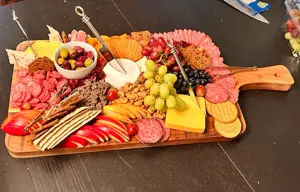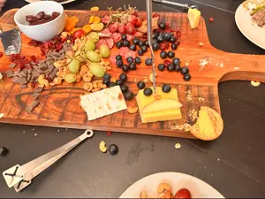 I was talking to fAsherah during our second break and I asked her for her phone number and she then sent me a picture of her cat calling it a demon. I then finish all my tasks early and I take the bus up to the church that is fancier, more traditional, and the priest does the offertory stuff facing away from the crowd. I then got there and I texted the Catholic Center priest asking where the place was and he told me this house. I get in and join a bunch of other men there, including Markus, Reuben, the Honduran, Rose's boyfriend, and the Greek god looking guy, who I decided I will now be calling Mercurius, we ended up being split up into two groups, one which would work on learning how to make a charcuterie board, and another which would be learning how to cook a steak really well. I ended up in the charcuterie board group with Reuben and learned from this buff guy stuff like getting most of your food at Aldis, starting off with the cheeses first, having a lot of color in your food, also putting on the grapes last. His kid was with our group and his dad had to tell him:
