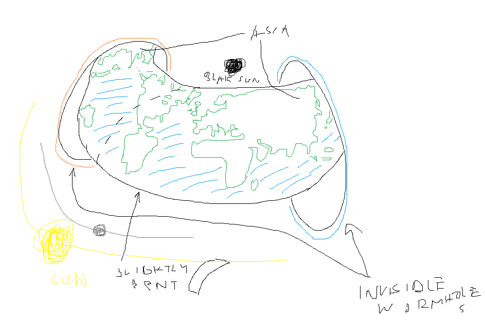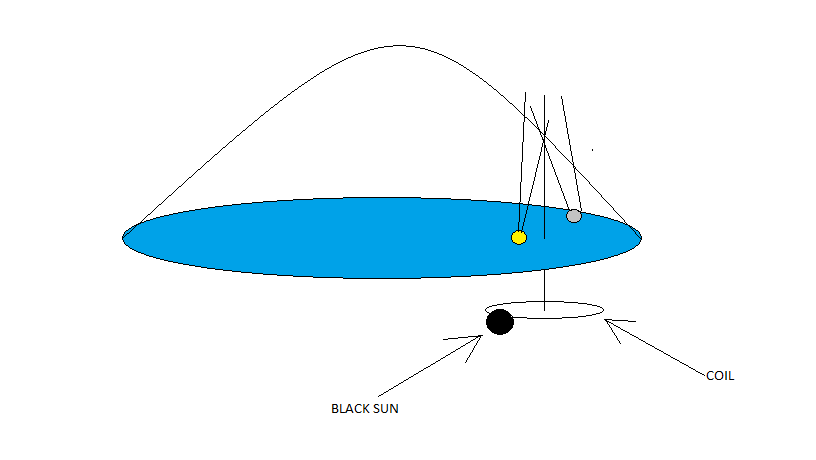 a black sun makes sense and is extremely believable in this case because the black sun is basically just a non‑visible electromagnetic radiation emitter. So what? You can not see it, just like how you can not see infrared and ultra violet. But how is the black sun supposed to bring light to the flat world? First of all, you can use that non‑visible electromagnetic radiation to make light by using noble gases, noble gases are found in the atmosphere and they will glow as soon as the non‑visible electromagnetic radiation hits them, the black sun below the waters and land is basically emitting energy that passes through the water and hits the dome (the water is important in this case because its role is to make a refractive index), the dome creates two conical refraction that results in the creation of the moon and the sun by stressing the noble gasses that glows in their own colors (creating the blue sky you see every day), but the conical refraction of the moon is weaker and only triggers the noble gas known as Krypton (Kr) giving its white/pale blue colored spherical shape, spherical thanks to the circular shape of our world. But keep in mind that this requires concentrated energy, non‑visible electromagnetic radiation might be hitting noble gases as it goes all the way to the dome, but it is not strong enough to cause illumination, and this is why the dome is so important. So you have two balls of concentrated non‑visible electromagnetic radiation emitted by a nigger sun strong enough to stress the noble gases causing them to glow bright like crazy.
