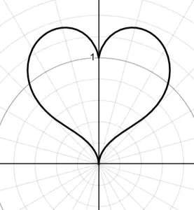 I think this looks the most heart-shaped out of the other ways of making one. I don't like the implicit curve one (i.e. (x^2 + y^2 -1)^3 = x^2 * y^3) as it looks a little bit squashed, and cardioids don't really look like hearts to begin with, despite their name. If you know any better ones, please post
