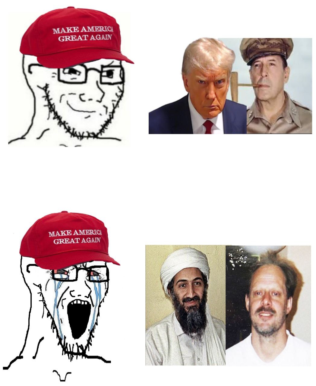 : it is basically saying that when Americans want genocide it is le good.. bit when we do it is le bad(I think)