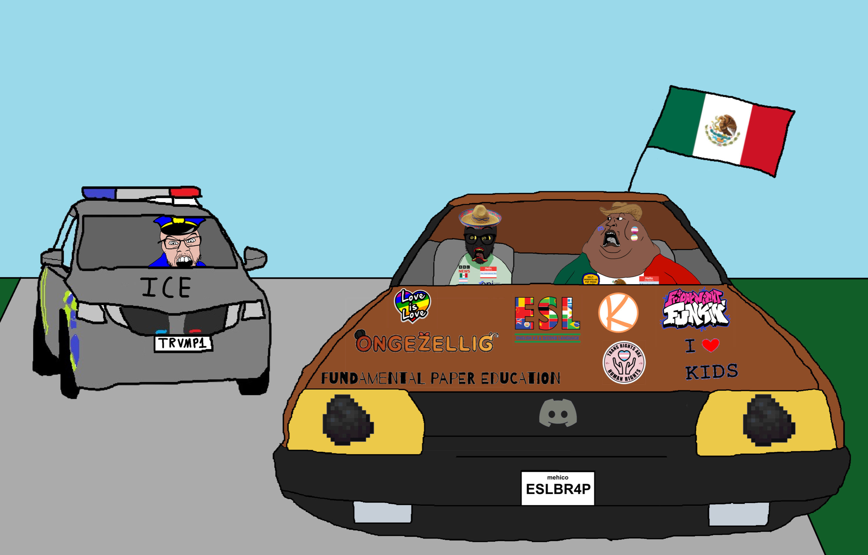 why is that police car chasing those tvrkaryans?