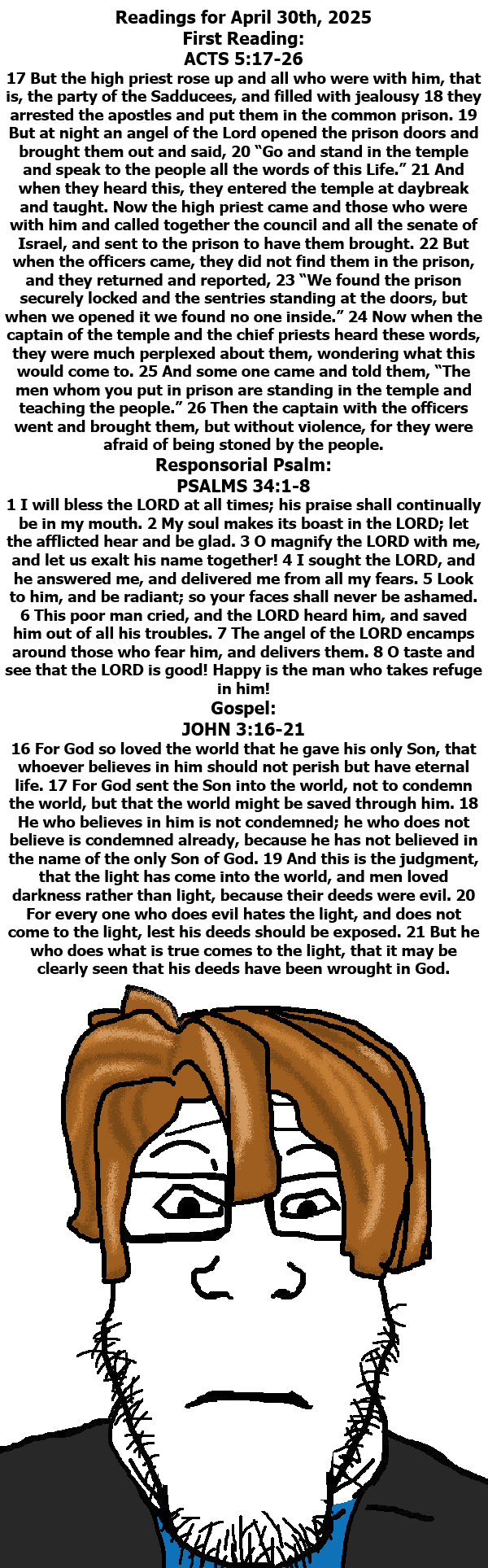 @Chud: Bible"jaks" even though the jak is normally unrelated to whatever the Bible said, and the Bible never said that you should upload it onto the 'ru and put a soyjak on it as an excuse