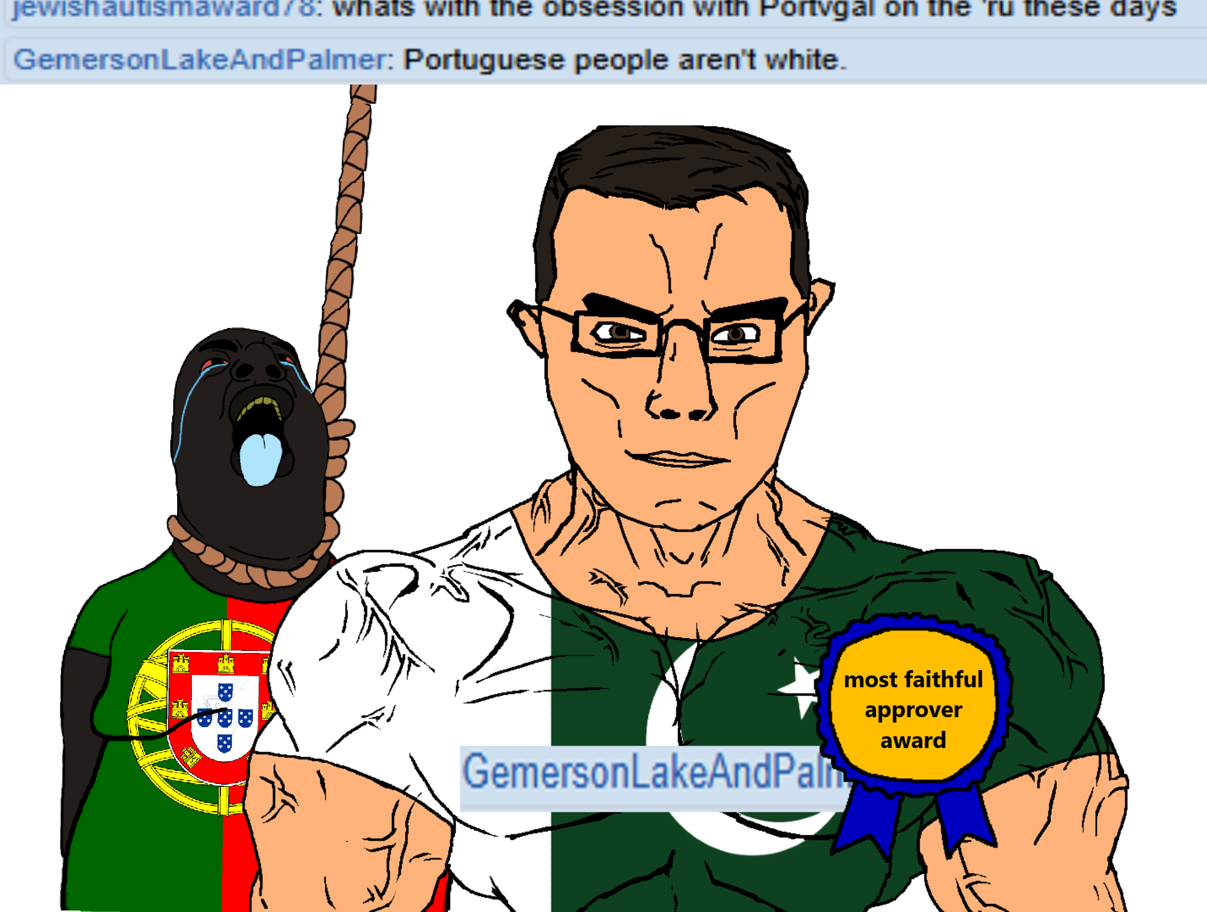 garf on the left wearing a portuguese shirt