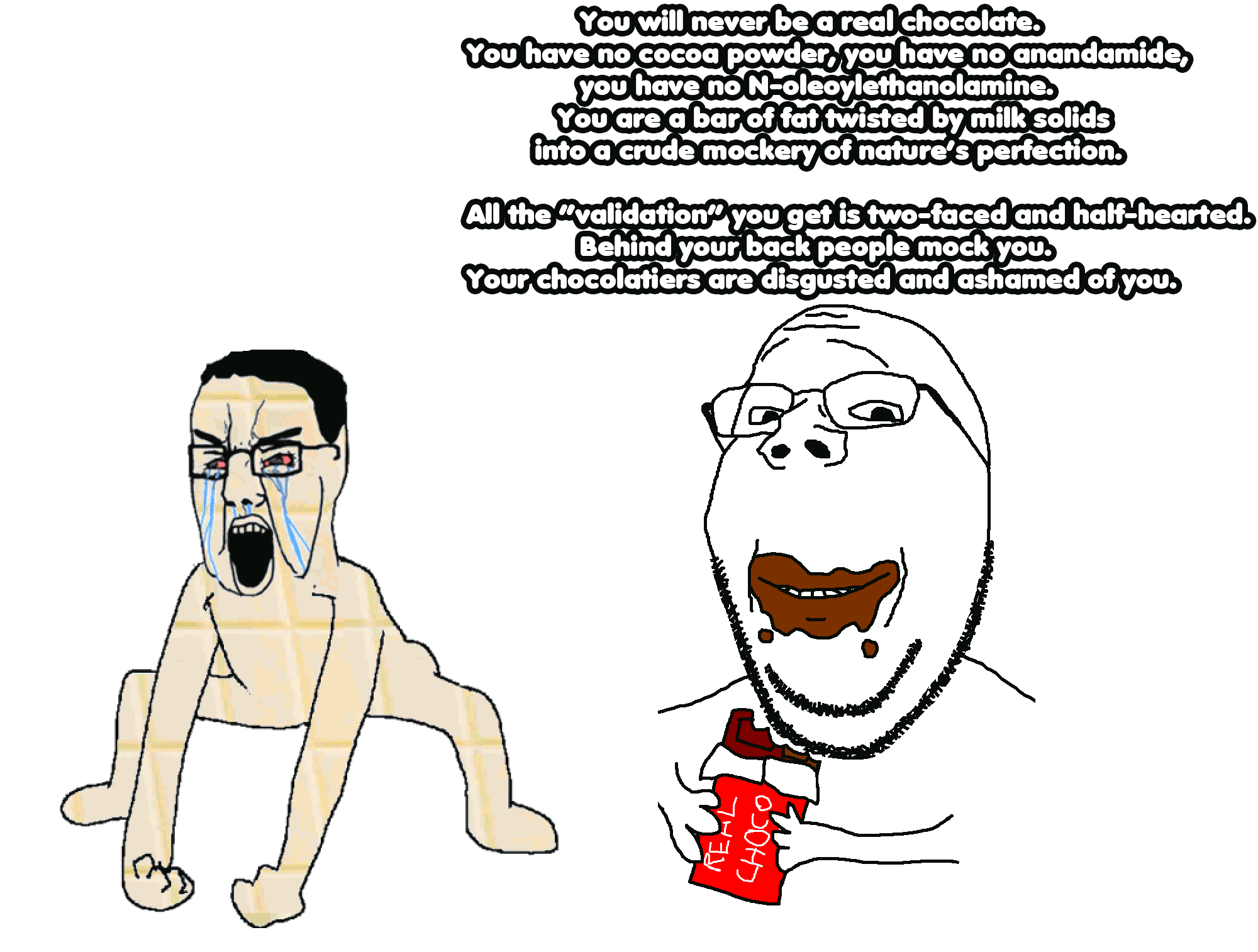 >dis wytboi chocolate is bad un sheeit