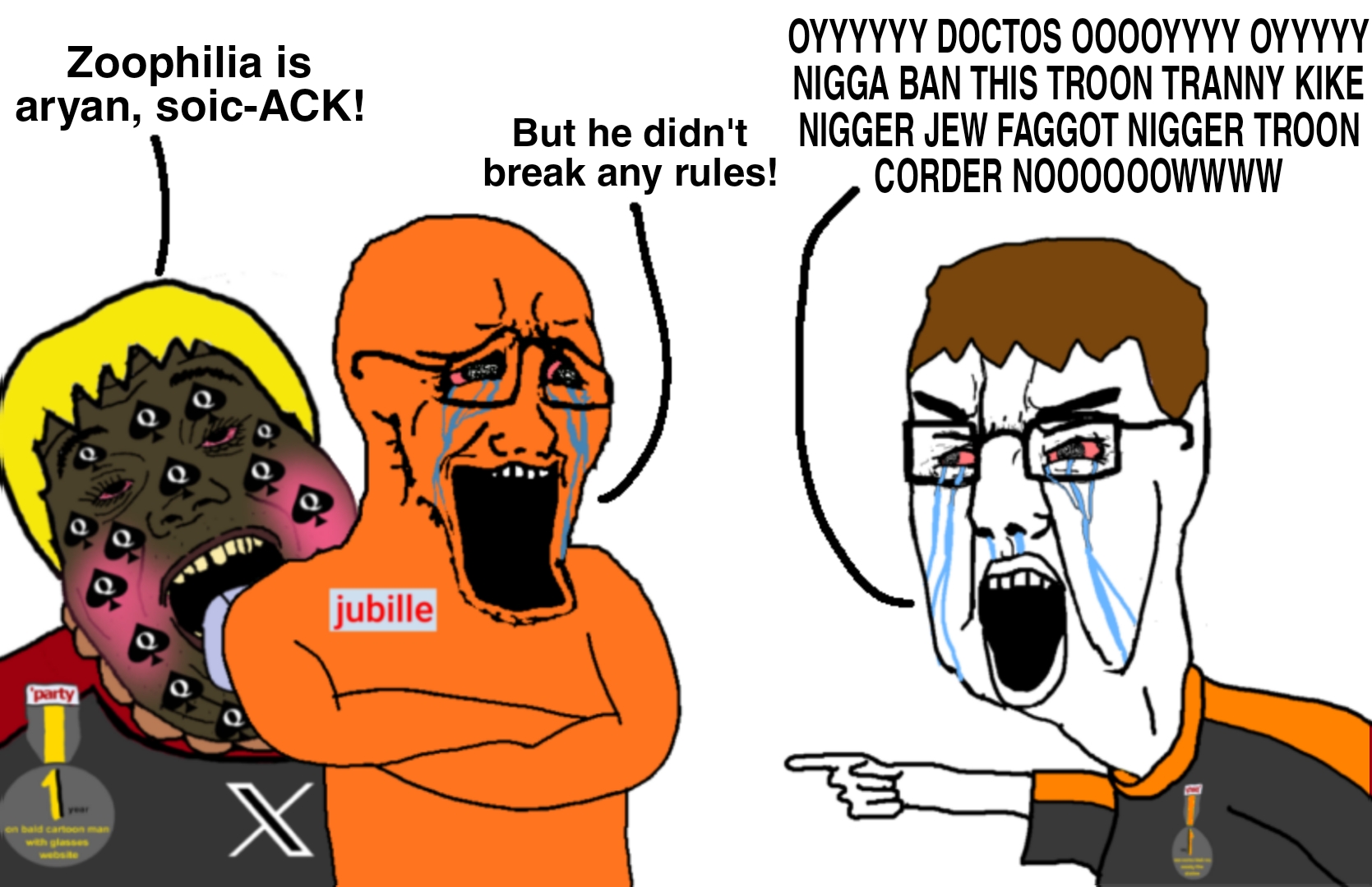 If you couldn't possibly be guilty of what you're banned for, the person we banned probably had a dynamic IP address and so do you. Please email soysneed@soyjak.st or post in the /q/ thread.