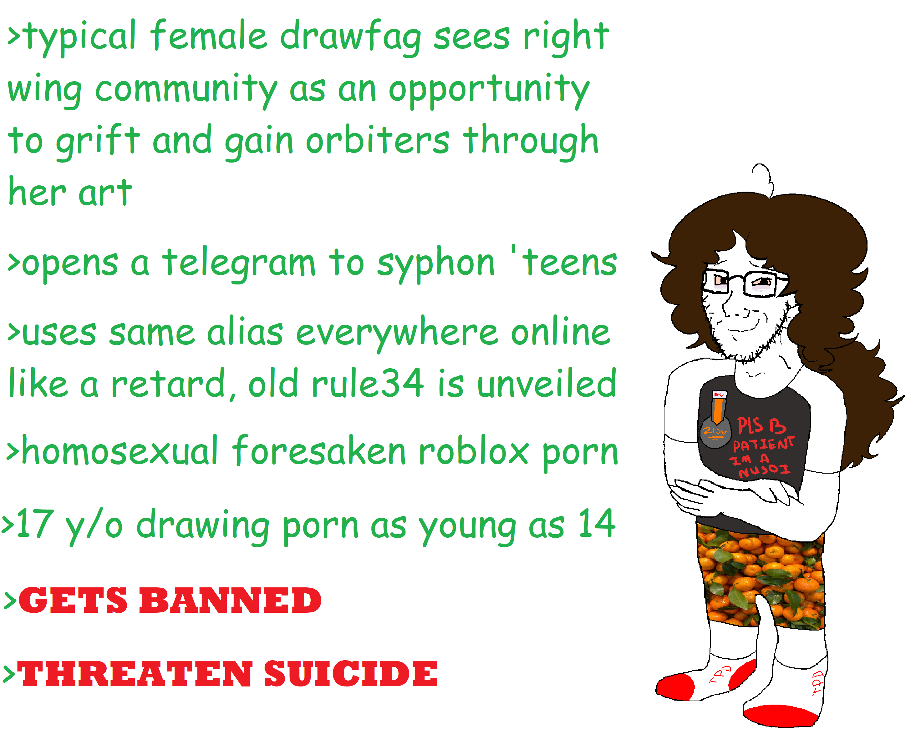 Chud9(1): @Hodo: just want to remind you she would've justified you getting skullfucked by diddybluds if that time ever came just because you're affiliated with a right wing website, she'd justify diddyphilia against you or any other right wing minor here. You're a flamboyant person beta male, man.