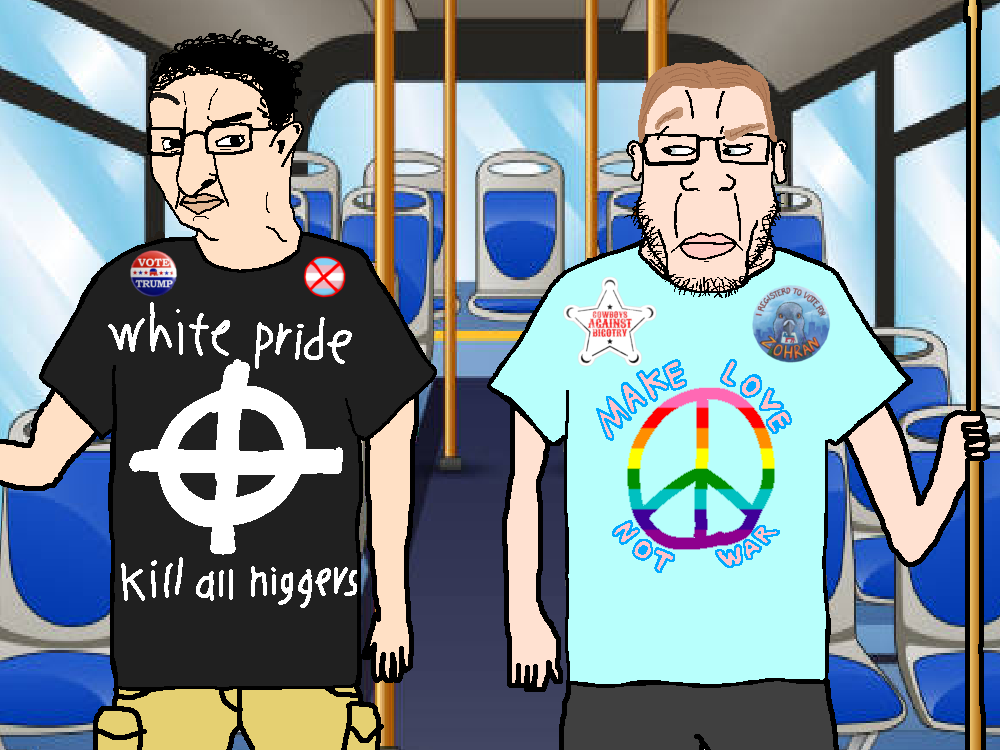 WOKE!!!, First of there is no such thing as a "gay hippie" and there jaw's do not strong look like that, Also we just want black's sent back to africa, "cowboy's against bigotry" is so disrespectful of american history because back in the wild west gay's were lynched and/or where treated like what they were (mentality ill), Lastly trump is 100% israel's puppet and the evidence is endless so we do NOT support trump at all (and for more reason's to)