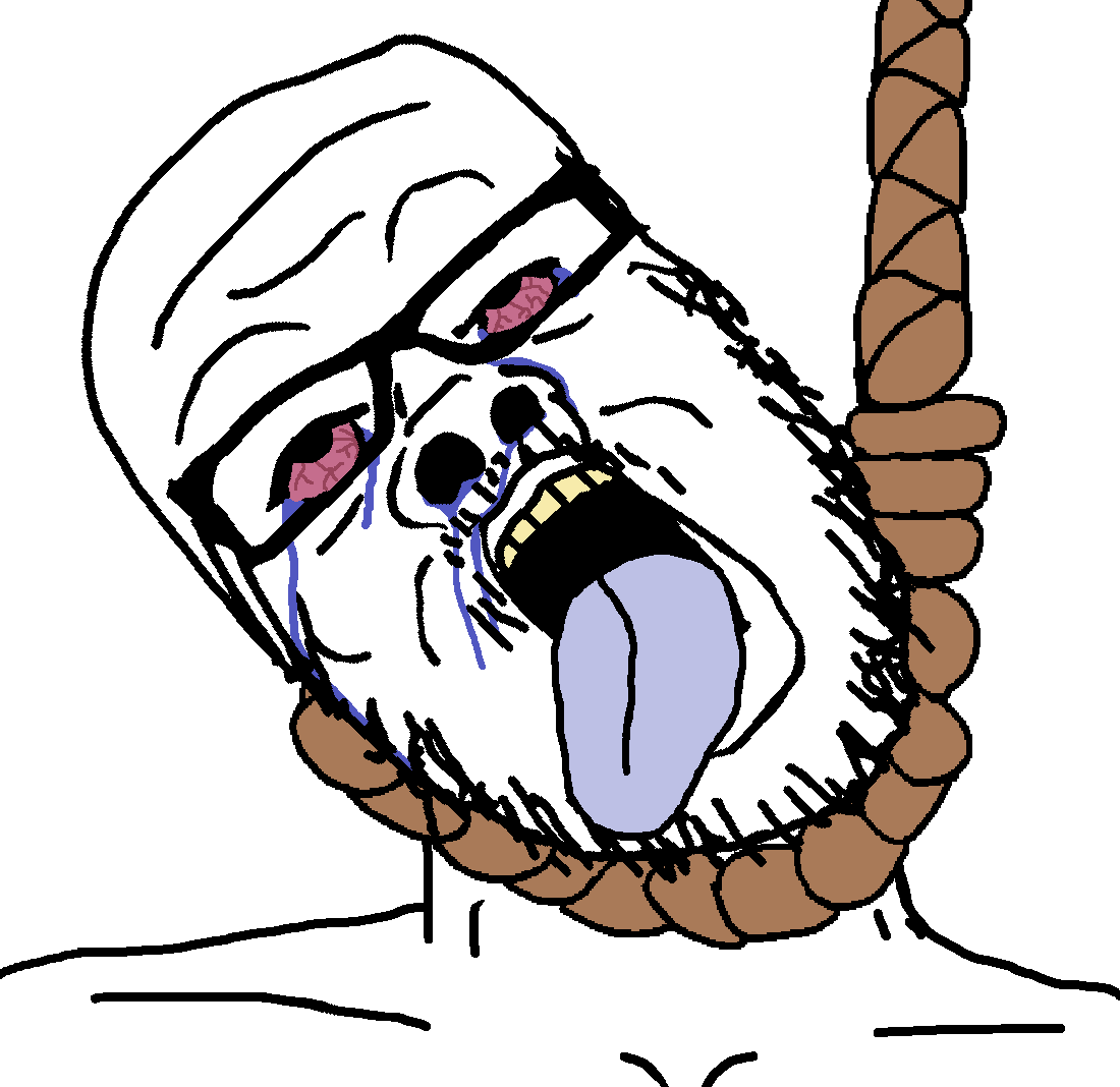 Image Views:23 Uploader H3K, December 6, 2025; 11:39 Tags ack bloodshot_eyes crying hanging noose rope rotten_teeth suicide template tongue variant:a24_slowburn_soyjak white_skin Source Unknown Locked No Approved by tag_reverter Rating IAS Prev | Index | Next Comments December 6, 2025; 11:39 - Reply H3K: He was too gemmy for this world... ASSETS https://files.catbox.moe/6hniaa.pdn December 6, 2025; 12:34 - Reply Chud1: his neck is so long he probably survived Commenting Comment Formatting Options Want to report a comment? Report the post itself with relevant details. Link to Post BBCode Link Thumb File HTML Link Thumb File Plain Text Link Thumb File