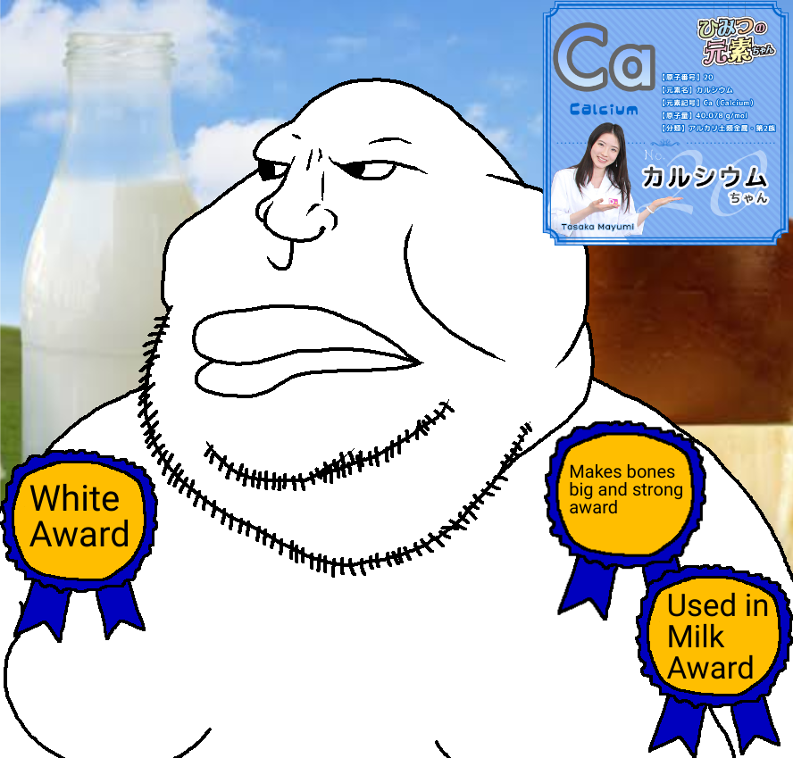 Image Views:13 Uploader MuzanKibutsujew, January 1, 2026; 16:44 Tags award calcium cheese cloud grass japanese_text milk series:elemental_mutts sky variant:meximutt white white_skin Source Unknown Locked No Approved by dap Rating IAS Prev | Index | Next Comments Nobody1 January 1, 2026; 16:46 - Reply Gem even though there is already calciummutt trevor January 1, 2026; 16:47 - Reply specialERALD Commenting Comment Formatting Options Want to report a comment? Report the post itself with relevant details. Link to Post BBCode Link Thumb File HTML Link Thumb File Plain Text Link Thumb File