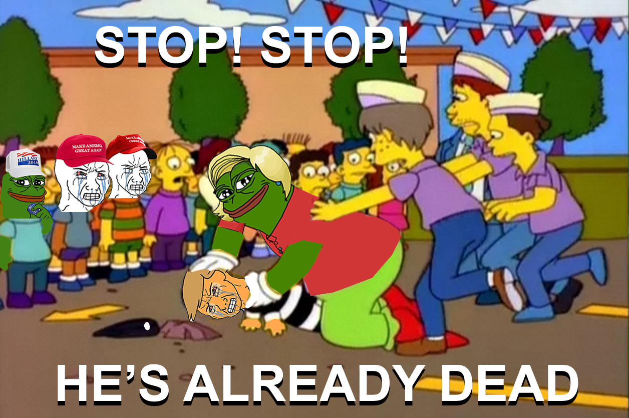 Advertisement Image Views:17 Uploader MANGOLOCOFRK, January 10, 2026; 01:38 Tags 2016 amphibian before_/qa/ frog hillary hillary_clinton hilldawg maga maga_hat multiple_people nas:pepe nas:wojak pepe_the_frog the_simpsons trump_2016 Source pol_(4chan) 4plebs Locked No Approved by Toilet-G Rating NAS Prev | Index | Next Comments ConservativeWaluigi January 10, 2026; 01:42 - Reply Reddit brimcoal trevor January 10, 2026; 01:42 - Reply the left can't meme sloppyjakky January 10, 2026; 01:50 - Reply memes that will make you the coolest ugly person in the group chat xerox January 10, 2026; 01:56 - Reply its raisin Commenting Comment Formatting Options Want to report a comment? Report the post itself with relevant details. Advertisement Link to Post BBCode Link Thumb File HTML Link Thumb File Plain Text Link Thumb File