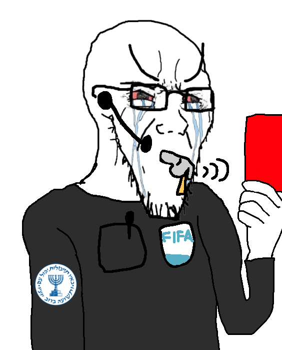 Advertisement Image Views:24 Uploader Chud, January 11, 2026; 23:53 Tags arm bloodshot_eyes clothes crying fifa fifa_badge football hand holding_object microphone mossad pen pocket red_card referee soccer sport sports stretched_chin stretched_mouth variant:soyak whistle white_background white_skin Source Unknown Locked No Approved by dap Rating IAS Prev | Index | Next Comments imissyoutuey January 12, 2026; 00:01 - Reply >you WILL have to receive a penalty even doe you just scraped the other noon's shoulder xerox January 12, 2026; 00:54 - Reply i hATE SOCCER Commenting Comment Formatting Options Want to report a comment? Report the post itself with relevant details. Advertisement Link to Post BBCode Link Thumb File HTML Link Thumb File Plain Text Link Thumb File