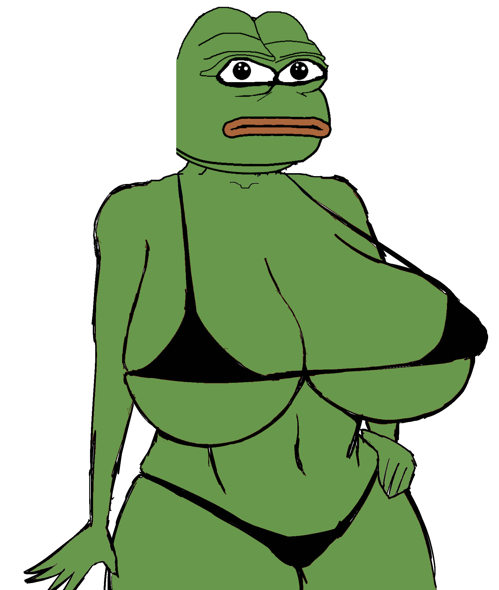 horribly inaccurate; pepe is a frog, making him an amphibian. frogs cant have a pair of giant knockers because boobs are mammal-only trait.