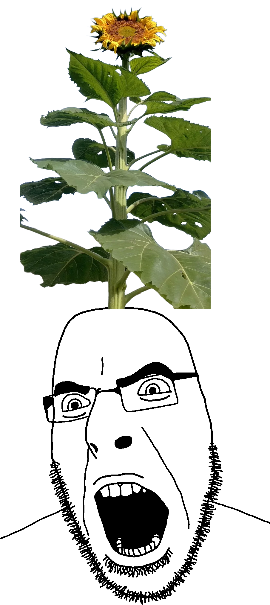 He must smell nice if he has a sunflower on his head
