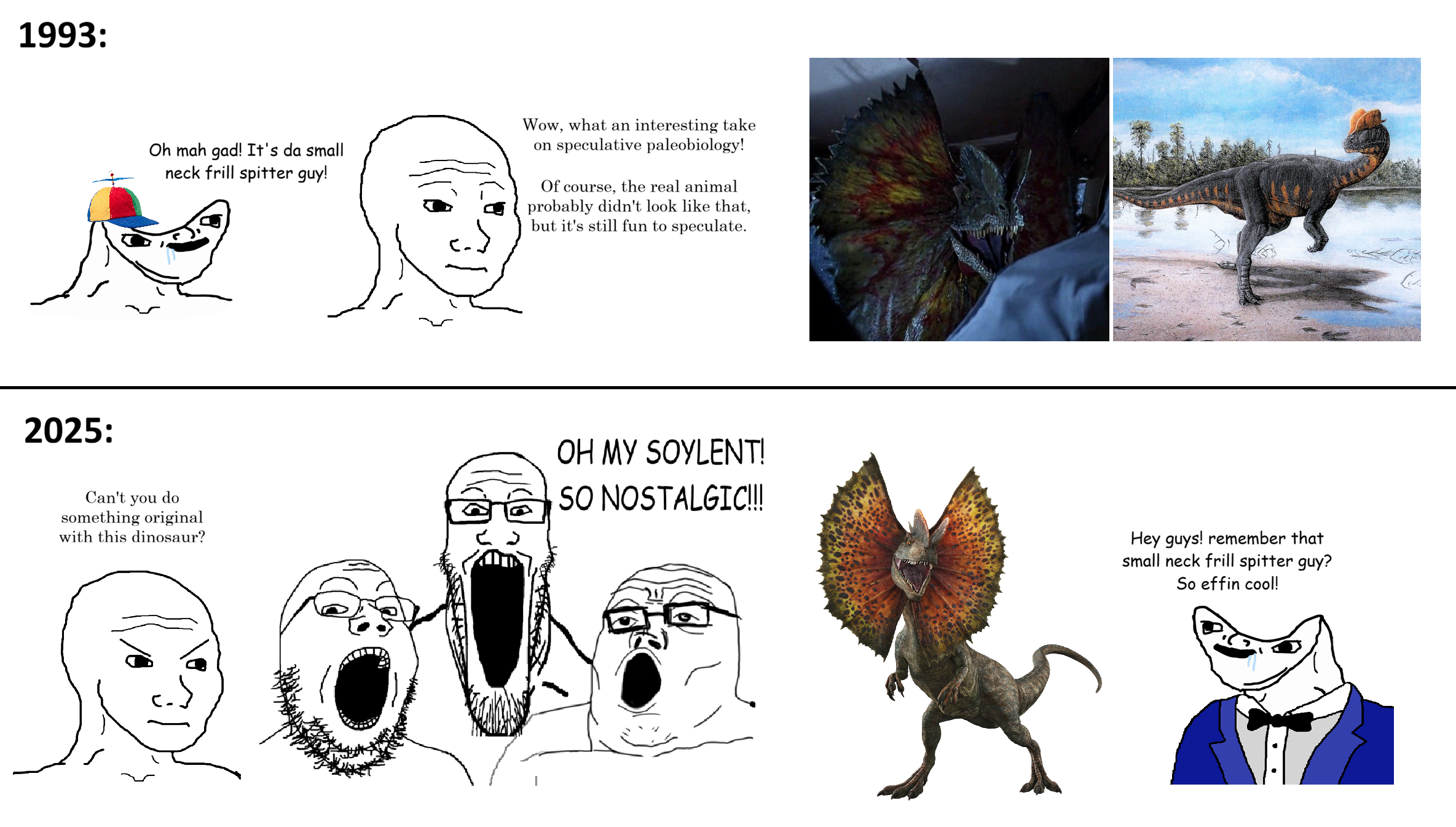 Even though the real dilophosaurus was bigger and cooler or however my smugness is cooked