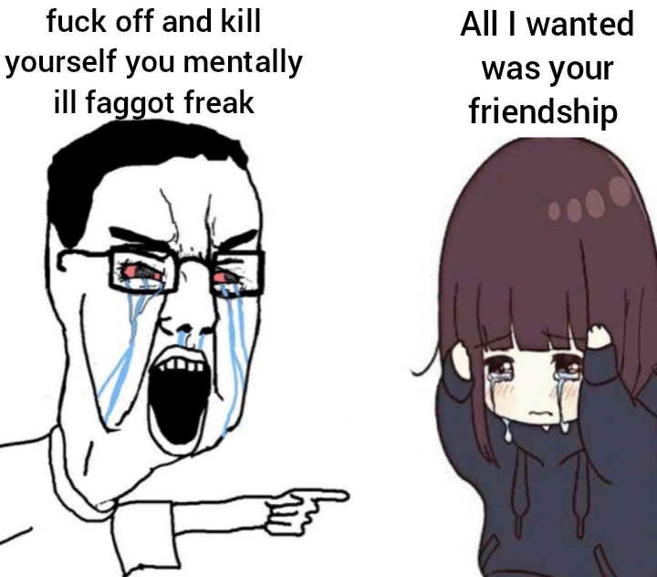 your whole ideology is about defending troonsThis looked sad at first but then I remembered that the character on the right is a troon so idc