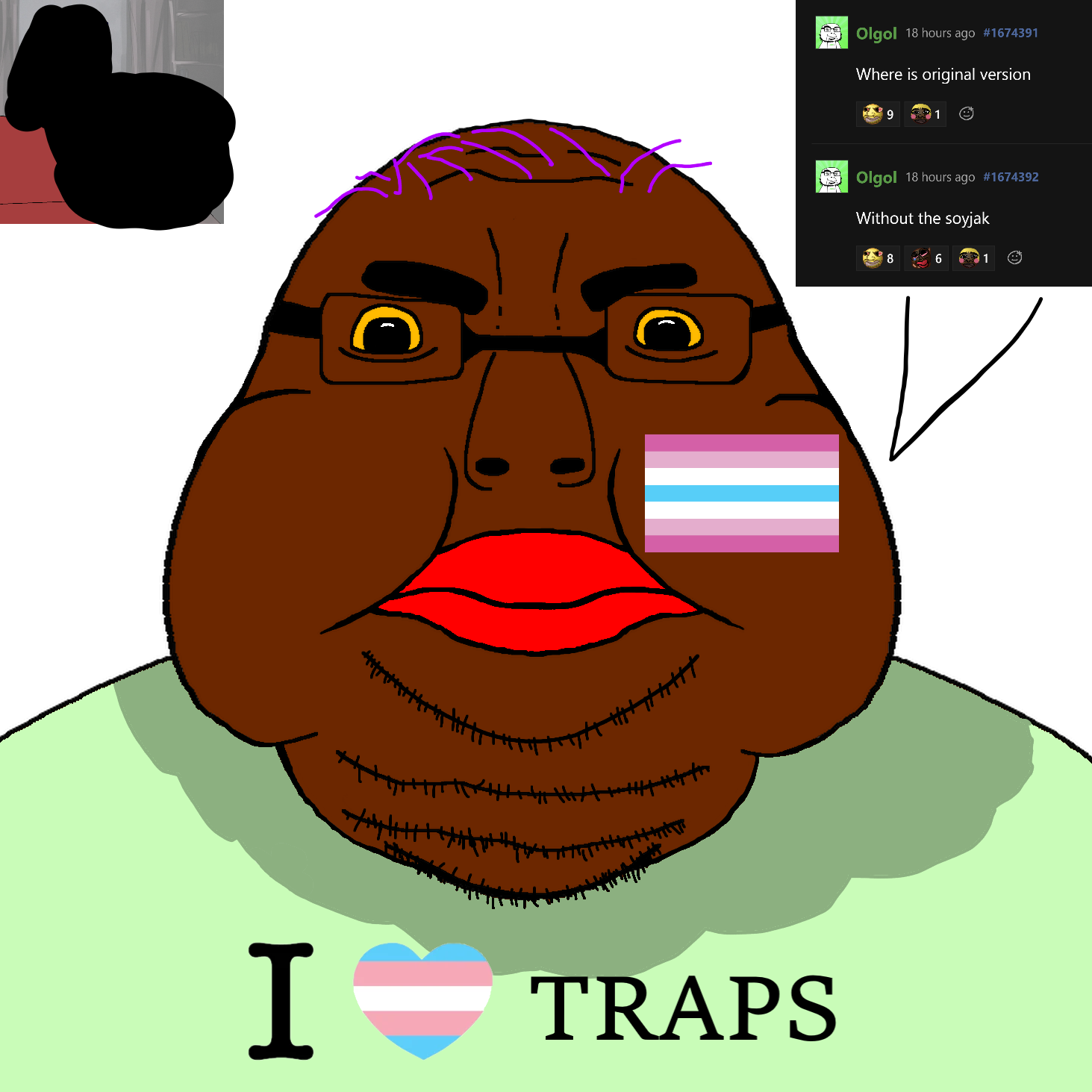 .To me it seems that the OG drawing (sans the soyjak) is of some femboy twink. I want to confirm that I did know this prior to commenting on the post. Please dont forgive me. Im a hiv ridden faggot.