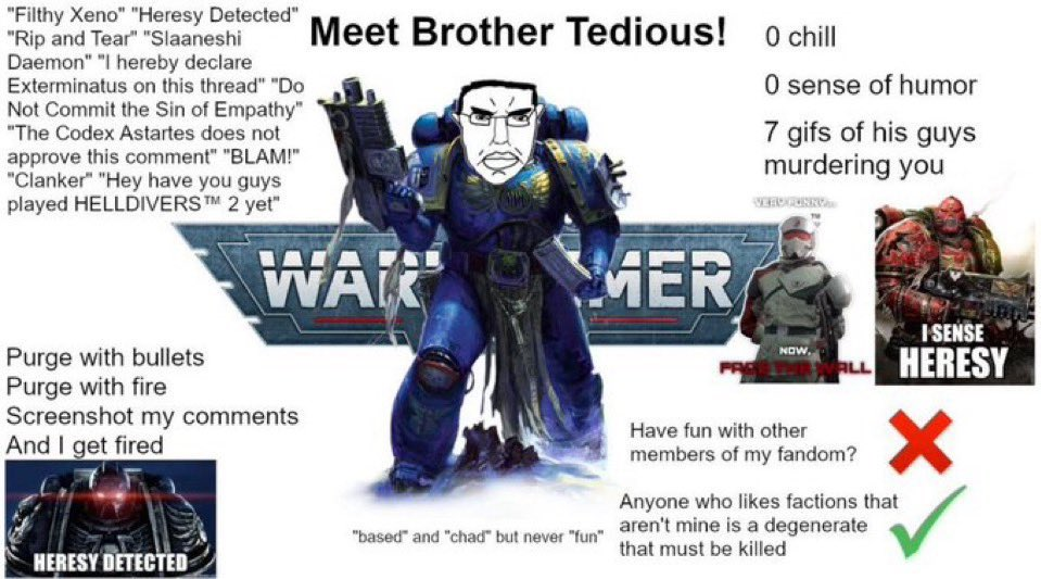 even tho its reddit dominated and if you check the most used subreddits of the different armies its all r34 except tyranidsGemmy setting ruined by obnoxious edgelord fanboys