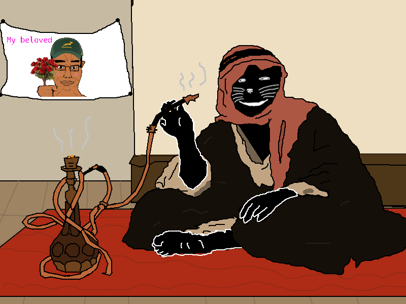 now that i think about it, it wouldve been more accurate if i drew me as the one smoking (i used to smoke the hookah a lot)