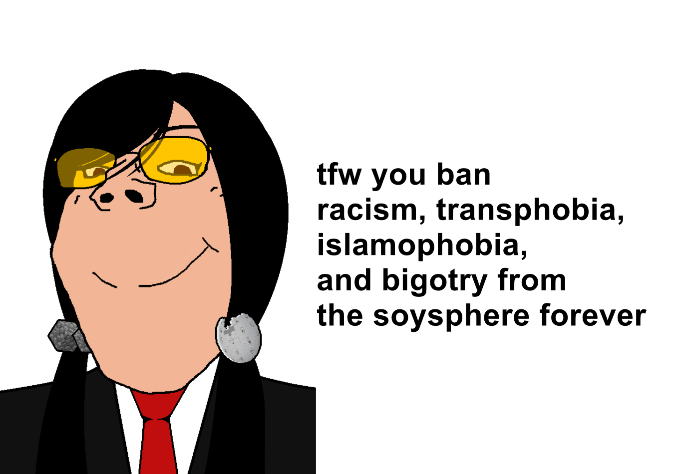tsmt, without it all the iconic characteristic humor the soysphere had for a lot of time will be completely unfunny and sovlessWhile hate is bad, it is in sharty culture forever so banning it would be banning sharty culture