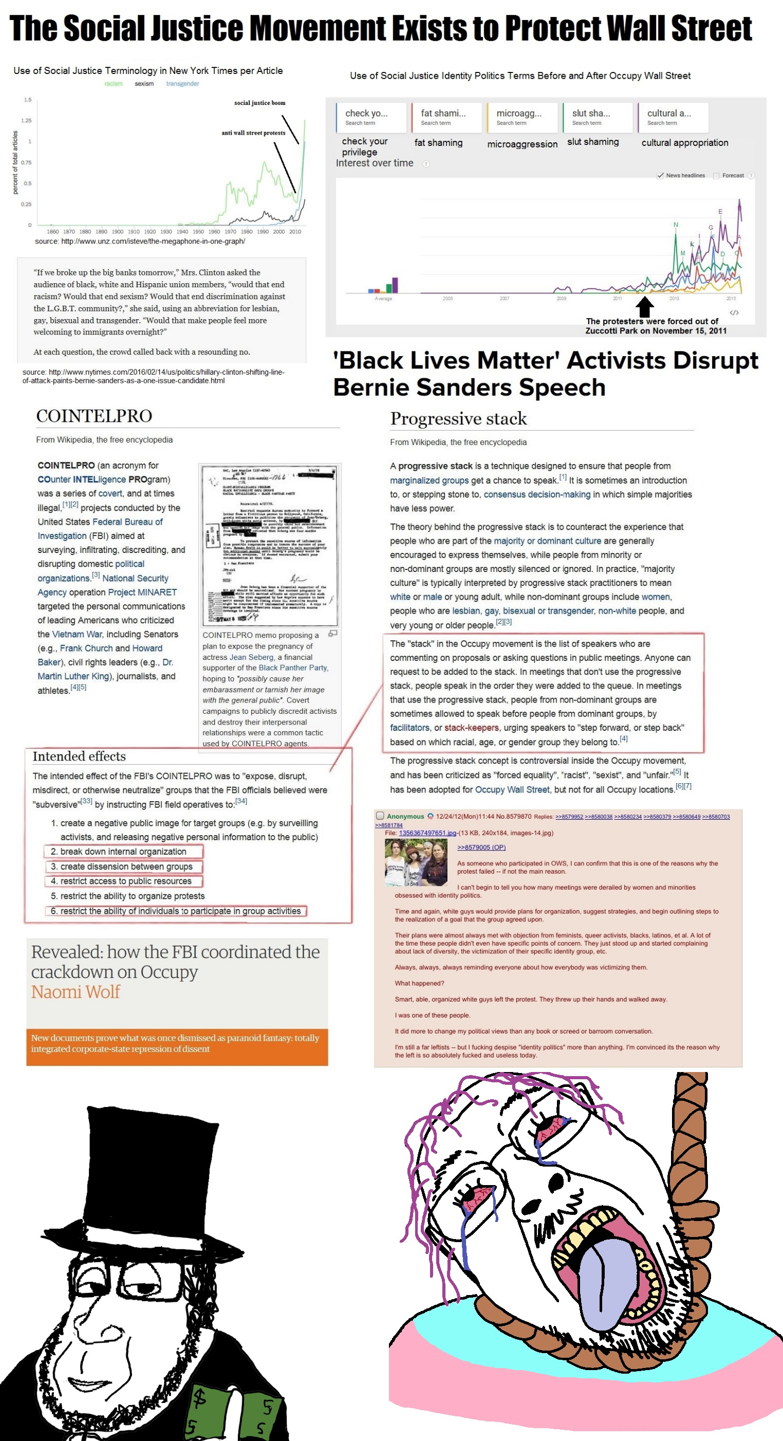 The OWS theory might have some truth to it but it seems overly convoluted and relies a lot on dates just being serendipitously stacked up. All the organs of the SJW movement formed well before OWS and maverick left-wing politicians like Bernie were not struck down by their lack of socially progressive beliefs. And if SJW shit was meant as a way to sabotage left-wing movements, then why is Wall Street rotten to the core with it? Even at the top of the rung theres DEI statutes making sure corporate boards and investment banks and such and such have a black or a gay or something. The actual fruits of the SJW movement happened way after DEI died down anyways
