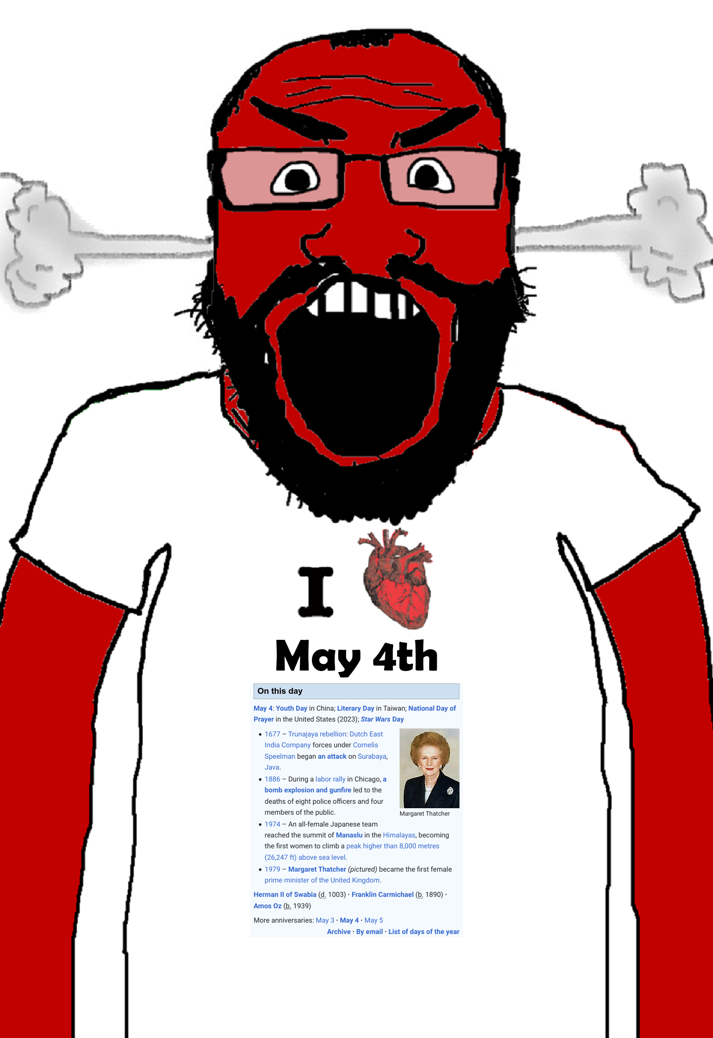 Margaret Thatcher is mentioned plus it is Star Wars day therefore this is coal.