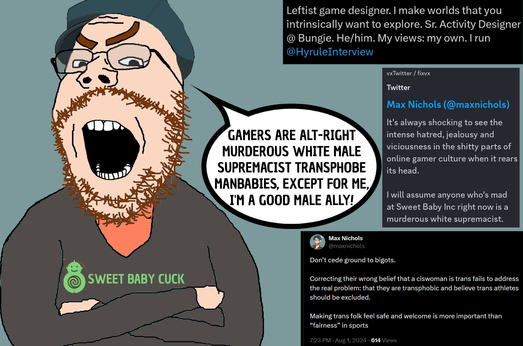 Video games have always been dominated by left-wing/libertarian types, as early as the 80s. Always been gay nerd powerfantasy against le heckin chuds. Always been antifascist and subversive, but it didn't bother people back then because they had big tiddy women instead of trannydick