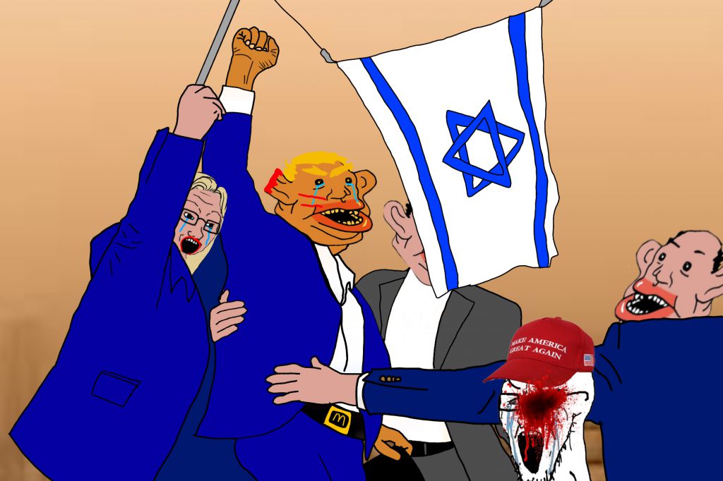 Medium effort gem and actually represents trvth, Jewnald Troonp is indeed controlled by Mossad and 88% sure that this recent magnicide attempt was staged for how the guards acted when le public were warning about the shooter at the roof