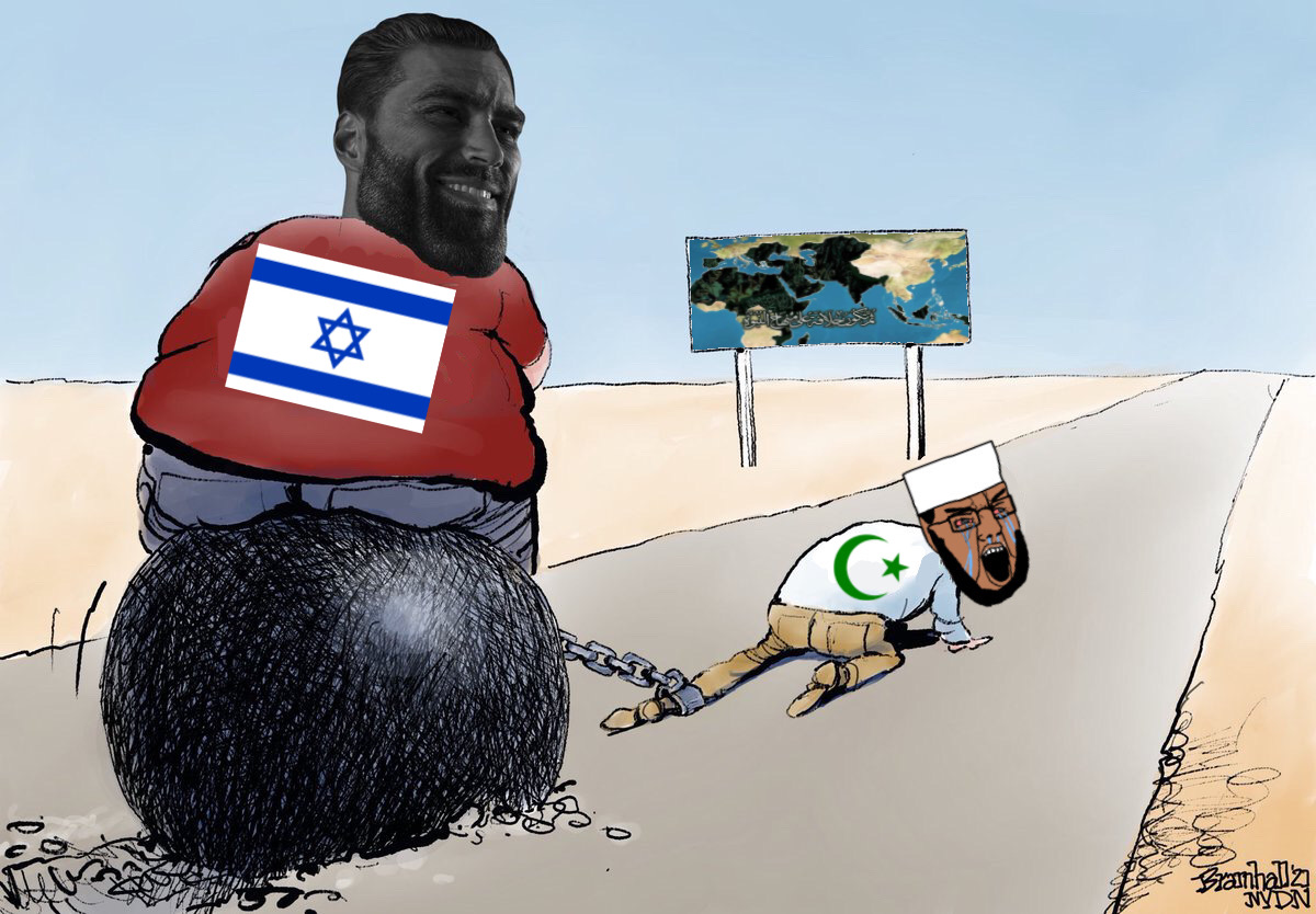 @Hamas_2: ..how exactly? youre telling me a few sand monkeys in gaza are preventing israel from expanding? even doe they just assasinated the head of the hamas and head of hezbollah and most of their generals? they can literally make cellular devices explode but a low iq inbred dunetard is gonna stop them? geg